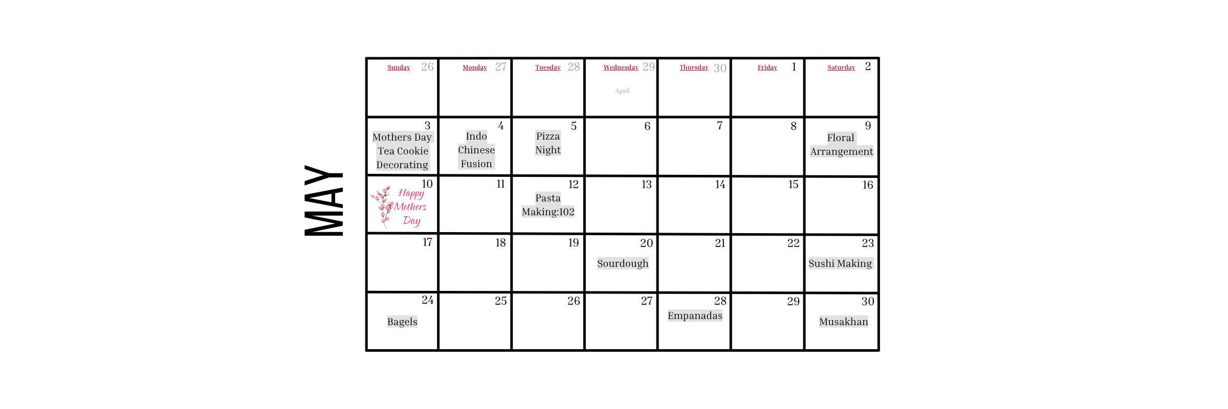 Check-out our overview of scheduled classes for the month.